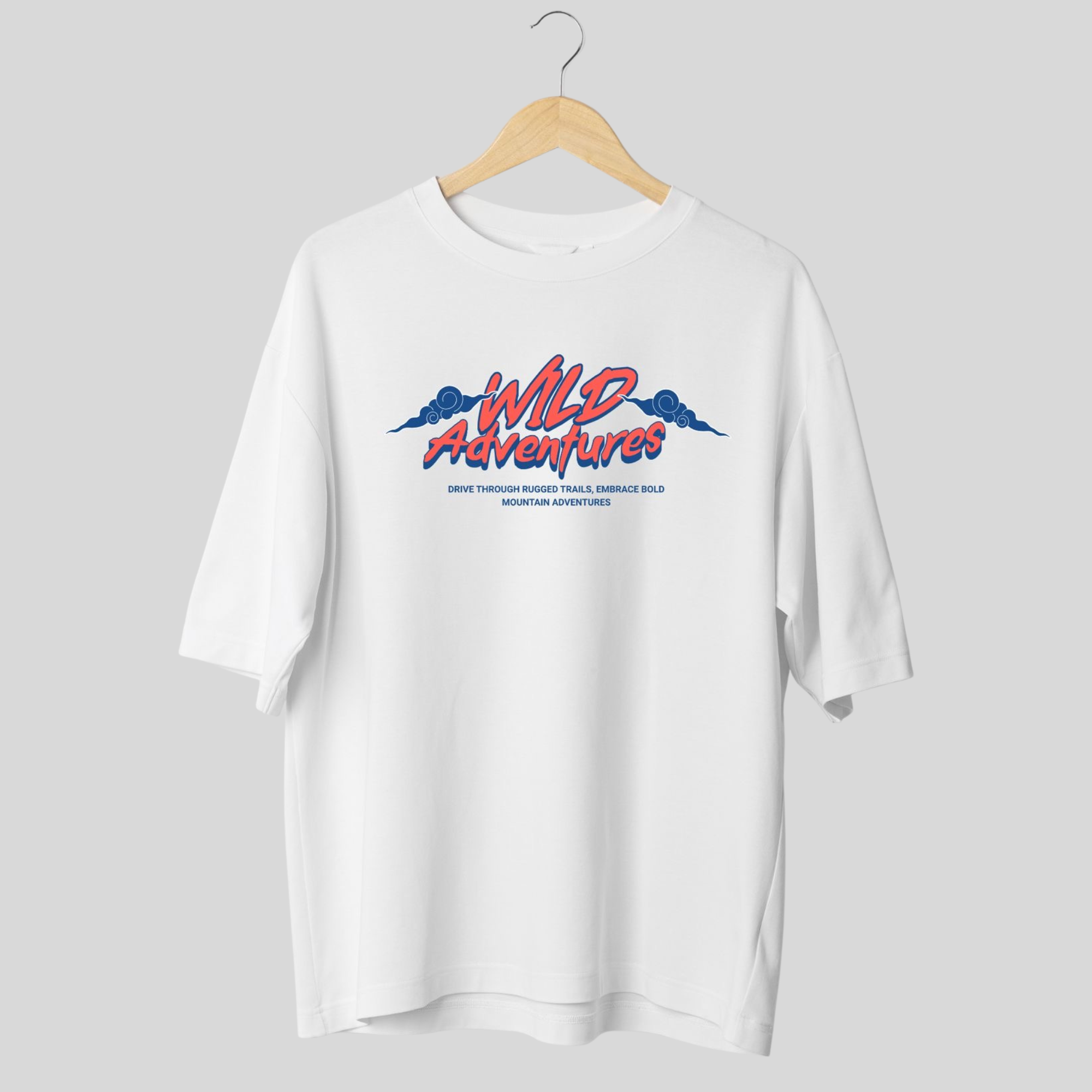 The back design features a powerful off-road vehicle conquering bold trails with the slogan “Wild Trails – Bold Adventures”, inspiring the spirit of freedom and adventure. The front design keeps it stylishly simple with “Wild Adventures” typography and mountain accents for a balanced, modern look.